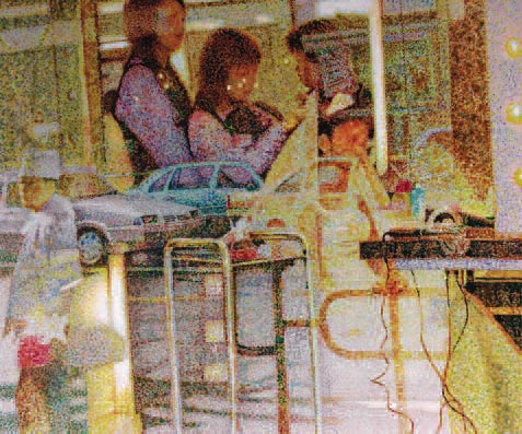 Or Liu Ming définit sa peinture comme « indirecte », dont la particularité, selon ses termes, sexplique par le fait « quil existe nécessairement une distance entre lartiste et son oeuvre ». Là est en effet lessentiel de sa démarche : cest sur cette distance quil travaille, et seulement elle. Pas démotion visible, donc pas de traces de pinceau (lidée de « touche » lui est étrangère), mais seulement des points évoquant des pixels pour traiter les corps ou bien de vastes aplats voilés par une pellicule transparente de couleur uniforme pour rendre les paysages urbains.