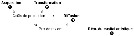 Ce raisonnement permet également d'introduire dans la structure du prix une différence entre la rémunération du travail de l'artiste, incorporée au prix de revient, et la rémunération de son "capital artistique". L'artiste débutant a un capital artistique faible, pour autant, sa participation à l'uvre est réelle, matérialisable et doit être payée.