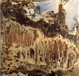 Prenons un autre extraordinaire tableau de la série Tibet : Séries A1, techniques mixtes 2010 (244 x 244 x 5 cm). Le mouvement de l’œuvre est ici circulaire. Les masses de matières que l’on dirait en fusion s’ordonnent selon une forme ovale située au centre de la partie supérieure de la composition, et au milieu de cette forme, se détache nettement un cercle inachevé. Le mouvement du tableau ainsi résumé exige que notre regard se pose sur lui un moment, le temps qu’il s’épanouisse comme la musique s’épanouit sous l’oreille, en même temps que par un mouvement inverse nous pénétrons davantage en lui.