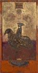 Marina Nakicenovic vit et travaille à Belgrade. Son atelier (un petit deux pièces qu’elle a aménagé dans un assez triste immeuble des années 60) déborde de ses travaux actuels : ni des sculptures ni des peintures mais certainement les deux à la fois, et accumule aussi les matériaux qu’elle utilise : objets métalliques de récupération d’une incroyable variété (clefs, vis, écrous, clous, chaînes etc…) J’ai rencontré Marina pour la première fois en 1991, à l’occasion du Salon d’automne de Belgrade où j’avais été frappé par son envoi. C’était un splendide tableau modestement intitulé La Miche de Pain (90 x 65 cm, huile sur bois, 1989). Elle y rendait hommage à certains des peintres qu’elle aime : Le Caravage, à qui elle empruntait la miche de pain placée dans un panier sur un buffet, Giorgione aussi, dont une moitié de La Tempête décorait une des deux portes du buffet. L’autre porte, ouverte, ne laissait apparaître que l’obscurité d’un vide : noire frontalité d’une surface abstraite qui faisait irrésistiblement penser à la Porte-Fenêtre de Matisse. On retrouvait la miche du Caravage sur une petite table à côté de Marguerite Yourcenar dans un autre extraordinaire tableau, dans lequel Marina Nakicenovic exprimait ses affinités profondes avec l’écrivaine française (Le Sourire de Marguerite Yourcenar, huile sur toile 170 x 100 cm, 1990). Ce tableau lui avait valu le prix du Centre culturel français de Belgrade en 1991, et La Miche de Pain avait entraîné une invitation de la Mairie de Paris pour une exposition personnelle au Carré des Arts du Parc Floral de Paris au printemps 1992.