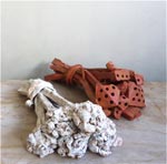 Cette nouvelle manière forte – après avoir opéré des années durant quasiment « dans la dentelle », du bout des doigts, voire au scalpel – constitue certes une autre façon d’aborder le matériau terre, mais elle ne contredit pas autant qu’il y paraît la période précédente. La mesure et l’ampleur gestuelle inédite pourrait être comparée à une rupture de ton au cours d’une conversation, lorsque l’on cherche à renouveler l’attention d’un auditoire déjà captif, afin de rappeler quelques impératifs du discours… C’est aussi pour l’artiste une manière de lancer un défi à la matière, de s’y confronter de toutes les façons possibles. Jusqu’à remettre en cause acquis et processus ayant pu conduire aux premiers succès, dans un mépris affiché de l’encroûtement qui guette invariablement ceux qui cherchent à se faire accepter consensuellement par une facture immuable, un « style »…Clémence cherche à se débarrasser de toutes les contraintes inhérentes à l’établissement du style, n’a pas peur de semer la confusion jusqu’au sein des plus fidèles de son parcours. Elle aborde sans aucun tabou tous les aspects de cette vitalité que possède la terre, sa capacité à répondre de façon imprévisible aux impulsions du corps qui la bouscule… En douceur ou en force.