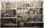 Une question reste en suspens. Nous avons évoqué l’incipit. Pourquoi Marc Giai-Miniet fait des boîtes. Nous l’avons montré ailleurs, l’incipit littéraire n’a rien à voir avec l’incipit pictural. L’incipit littéraire est de l’ordre du concept. (Exemple : « Maître Corbeau sur un arbre perché tenait en son bec un fromage » contient déjà TOUTE la fable : oiseau laid, abri, nourriture. Cette phrase incipitale est grosse de tout ce qui suivra, et surtout du message subliminal, qui force La Fontaine à produire sa fable : amateur de mots, Monsieur, apprenez ce qui vaut le plus. Ce message caché, l’écrivain le porte, il faut qu’il sorte. Il ne mettra le point final à son œuvre que lorsqu’il l’y aura placé –sans le mesurer consciemment. Ici, le message s’adresse à Louis XIV d’abord, à tout lecteur ensuite, car le lecteur avale le poison dissimulé dans l’oeuvre, sous peine de ne pas adhérer à celle-ci. ) En peinture, l’incipit reste diffus, sans porte de sortie, ses termes sont juxtaposés. Mais il faut qu’il sorte également ; fait de confrontations. Ici : coupe d’immeuble, étagères, noir et blanc, culture, machine à consommer/ transformer, machine à voyager. Le désir d’incipit peut alors se cristalliser dans une idée « d’écriture » : la lecture des boîtes de gauche à droite et de haut en bas annexe ici évidemment la page du livre. La comparaison s’arrête là. Le livre n’est ni l’arme du peintre, ni son champ de manœuvre. Louis Pons, par exemple, ou Jacques Brissot, commençant un jour ancien à placer des objets au lieu de les dessiner, ne s’efforçaient-ils pas de cerner un incipit de catégorie « littéraire » ? Entendons Marc Giai-Miniet : « Je ne dirai pas ça pour moi : j’ai une idée, je cherche un objet qui va donner corps à cette idée, mais ce n’est pas l’objet qui crée l’idée. L’objet est soumis, transformé, trituré pour exprimer l’idée ». Cela l’exonère-t-il de son rôle inducteur ? Cela empêche-t-il l’association d’objets de mettre de l’ordre en suscitant le désordre, vers un nouvel ordre transcendé ? Cette démarche, cette technique relèvent du collage, au meilleur sens du mot. La création s’insère dans une hypothèque du tangible, AUTOUR des objets éprouvés. Littérairement : en amont et en aval. Plastiquement en confrontation- puzzle, chaque élément susceptible de rééquilibrer l’ensemble à tout moment.
