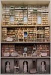 La démarche, en se ménageant le pouvoir de préserver la pulsion aussi longtemps que possible en cours de création, se trouve une légitimité plus forte que l’invocation de tropes « métaphysiques ». C’est à la chaîne vitale que l’œuvre se consume : dans l’interdit de la chaudière. Idéaux et pulsions, tout communique. Pas une société Big Brother ; une société du Ventre. Un autodafé permanent. La pompe marche. L’immeuble est un Moloch, un Ogre pour petits enfants. Les boîtes se lisent de haut en bas, mais privilège de l’art et de l’incipit disséminé, l’œil peut se promener à la convenance du « lecteur ». Le fonctionnement des « digérants » occulte-t-il la notion de pouvoir du livre, le désir de spiritualité face au broyage ? Le problème d’une résistance de l’esprit à la captation d’énergie ne se pose pas vraiment. C’est au contraire la qualité de résistance qui alimente l’usine. Qualité nécessaire : sans elle, l’énergie resterait médiocre. « Et toi qui manges-tu, grouillant ? Je mange le velu qui digère le pulpeux qui ronge le rampant »…écrivait Norge. La machine a besoin de cette « spiritualité » pour ne pas tarauder à sec. Ce sont cette recherche, cette créativité, cette résistance, qui font sa pâture-même. Elle ne se sustenterait pas de semblants, ni de vieilleries conformistes. L’homme accède à l’esprit par nécessité biologique. Ses pensées les plus aiguës seules renferment assez d’énergie pour entretenir, et pour apaiser la machine. Un échange. « Hypocrite lecteur, mon semblable, mon frère ». Le jouet doit fonctionner sans retour pour affronter le constat du Caligula de Camus : « C’est une vérité toute simple et toute claire, un peu bête, mais difficile à découvrir et lourde à porter »… « Les hommes meurent et ils ne sont pas heureux ».