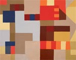 Les premières phrases musicales jouées par Vladimir Feltsman offrent un espace dynamique, clair et d’une harmonie scintillante. Les touches de piano se jouent distinctement. J’espère les donner à voir dans la multiplicité des formes colorées du tableau. Les oranges, puis les bleus, et enfin les blancs constituent une matrice spatiale que j’associe aux accords de la main gauche. L’emplacement de ces couleurs automnales sur la toile crée un espace tridimensionnel. Et la temporalité est pour moi exprimée par des plans. Espace et temps sont donc représentés par des couleurs mais aussi par une architecture particulière faite de lignes, de colonnes, de diagonales. C’est sans doute pour cette raison que Marc-Mathieu Münch écrit : « le mouvement de mes yeux semblait ne plus pouvoir s’arrêter, tellement sont si nombreux les rapprochements qui s’imposent »…