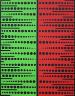 C’est en 2017 que cette série s’achève avec l’utilisation d’un format vertical qui est le point de départ de son nouveau travail, présenté à ArtParis sur le stand de la galerie Lahumière en 2018, et sur celui de la galerie Françoise Livinec en 2019. Les tableaux sont divisés en 2 dans le sens de la hauteur, dans une symétrie bicolore où des alignements de points noirs figurent le langage muet de ce registre dans lequel chaque tableau inscrit, avec ses couleurs alternées, un nouveau chapitre d’un texte inconnu et jamais semblable, dont chaque toile apporte une version particulière en bleu et rouge, en jaune et vert, en rouge et jaune, violet et vert, parmi un grand nombre d’autres possibilités.