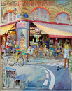 L’histoire de l’art nous enseigne que les plus grandes œuvres, celles réputées les plus belles, ne sont généralement pas celles dont le sujet est lui-même considéré, au moment de l’exécution, comme grand ou beau. On trouve ainsi beaucoup de détails apparemment triviaux dans les tableaux d’Authouart, ou simplement légers, comme les mini-jupes portées par les nombreuses filles décontractées du Bar La Fourmi. On trouve également des éléments carrément fictionnels, comme l’avion qui parcourt Broadway. Ne nous étonnons pas : à la différence de l’objet signifiant, qui cherche la cohérence, l’objet esthétique n’a que faire de la vraisemblance. Il y a une vérité de l’œuvre d’art, mais cette vérité ne tient pas à la vraisemblance. L’inimaginable profusion d’objets et de signes qui sursaturent l’espace plastique de Daniel Authouart, ou plutôt les espaces (car ces tableaux sont des palimpsestes, et des images transparaissent ça et là, venues du dessous), cette inimaginable profusion déclenche chez le spectateur un réflexe de contemplation pure, littéralement de sidération. Il contemple comme devant une pure abstraction, perdu dans les méandres d’une circulation d’images dont il remet à plus tard la découverte de son sens. Il comprendra alors, peut-être, que le peintre lui parle d’un monde devenu fou qui s’achemine vers sa perte.