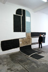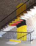 Quand on se pose on peut voir les marches qui mènent au corps le corps des marches la marche du corps. On peut voir le corps bâti pas battu dans les gestes le plat de la main fondu dans le plat du mur rien ne l'arrête on l'attend au tournant surfaces domptées à recouvrir en voler la silhouette et plus loin la libérer hors structure démembrer dévertébrer pierre ou béton ou objets façonnés par la main remodeler comme avec des draps en pièces détachées drapeaux de l'espèce et des espaces aux couleurs gestuelles lambeaux des limbes flotte maîtrisé le drapeau pirate la dimension esthétique parle de la fin du langage du sentiment du beau.