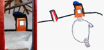 Pan de mur avec Peter qui grimpe sur ses souvenirs de travaux manuels pister les points cardinaux vue du ciel et du sol champs cultivés de la mémoire du temps les empreintes pour la cas où ça tombe pour le cas où ça casse appliquer des pansements même pas mal. On peut voir un ravalement de façade de l'art. On peut voir ça.