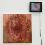Le recours à l’assistance robotisée d’une machine à jet d’encre, pour fixer sur la toile veloutée et satinée les images, confère une valeur picturale tactile et un plaisir visuel à chacune des œuvres. Le processus d’agression des images è mis en exergue dans quatre œuvres auxquelles un viseur a été ajouté et qui montre le montre le virus en action se répandre et « défigurer » la construction de l’image d’origine (toujours un anus ou un œil).